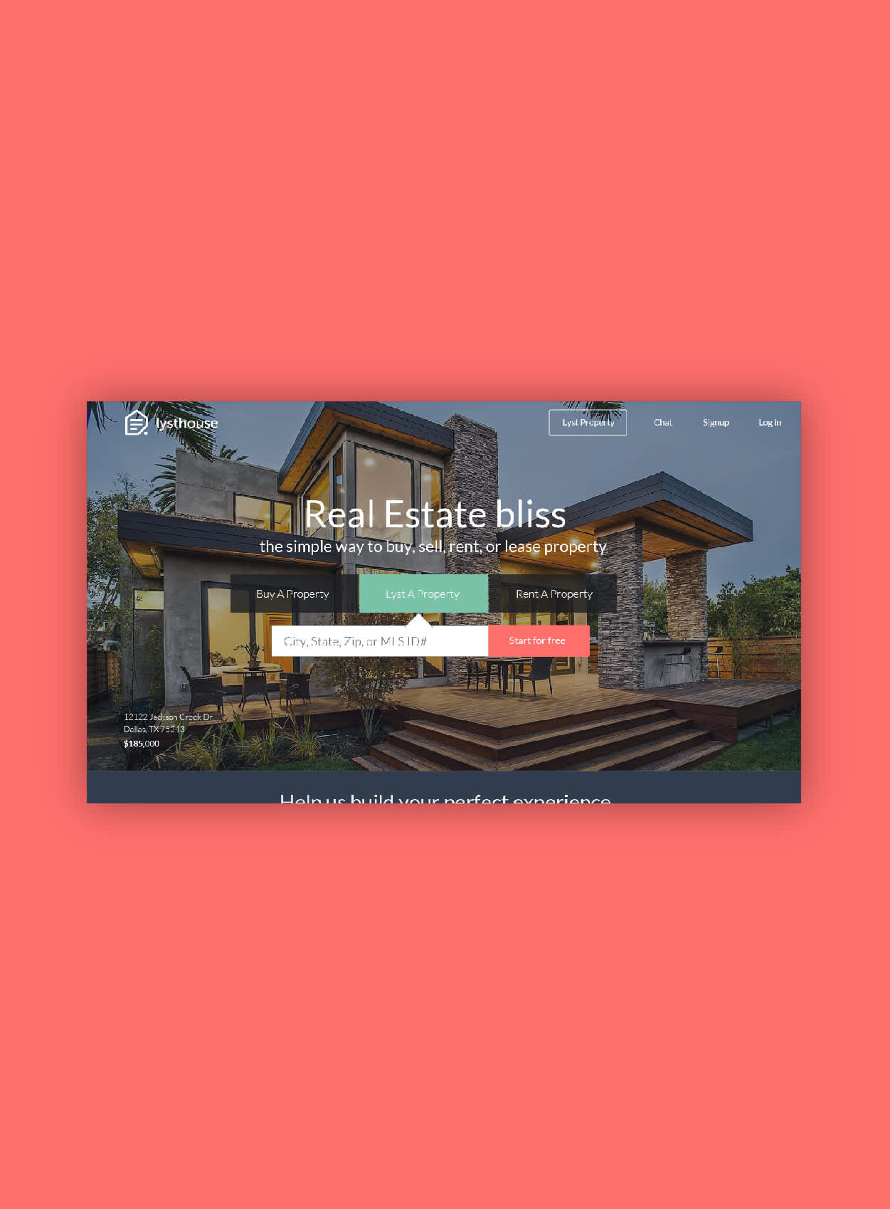 Lysthouse is a real estate concept in which anyone can make a listing, including real estate agents, brokers, and homeowners themselves. Their digital real estate marketing idea was to create a site where anyone can find or sell a home.