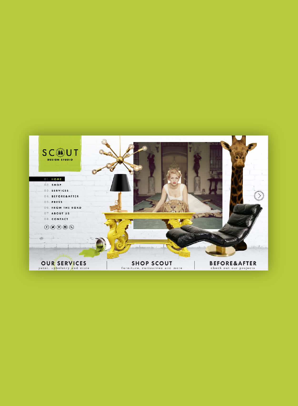 The Scout Design Studio team contacted The Old State to come up with a unique solution to the boring web templates that they had seen on every other interior design firm websites. Our objective was to integrate these wildly different ideas into a seamless website that would allow Scout's diversity to shine through. They dreamed it up and we made it happen!